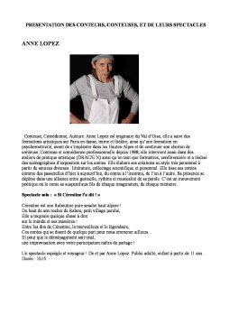 18H00 : Anne Lopez , « Si Cerestine l’a dit ! ». Durée 1H environ.